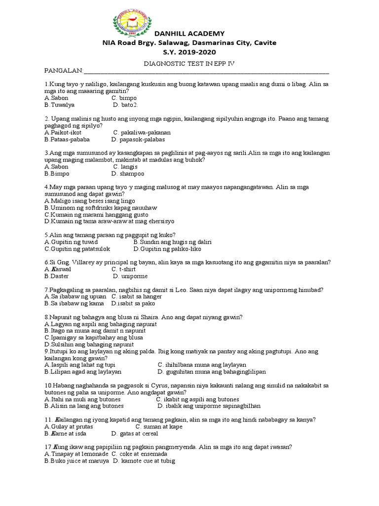 DIAGNOSTIC TEST IN EPP IV
