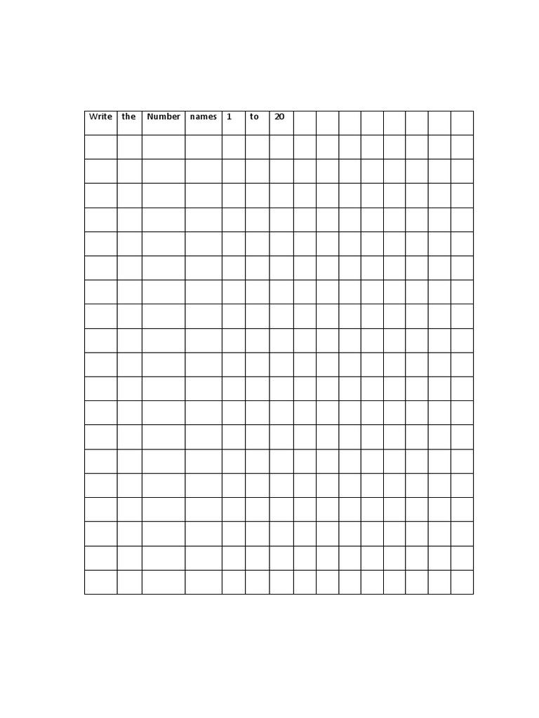 Write the Number names 1 to 20