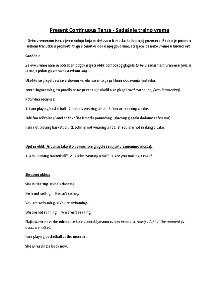 Ovim vremenom iskazujemo radnju koja se dešava u trenutku kada o njoj govorimo. Radnja je počela u