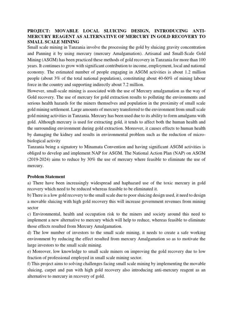 Mining (ASGM) has been practiced these methods of gold recovery in Tanzania for more than 100
