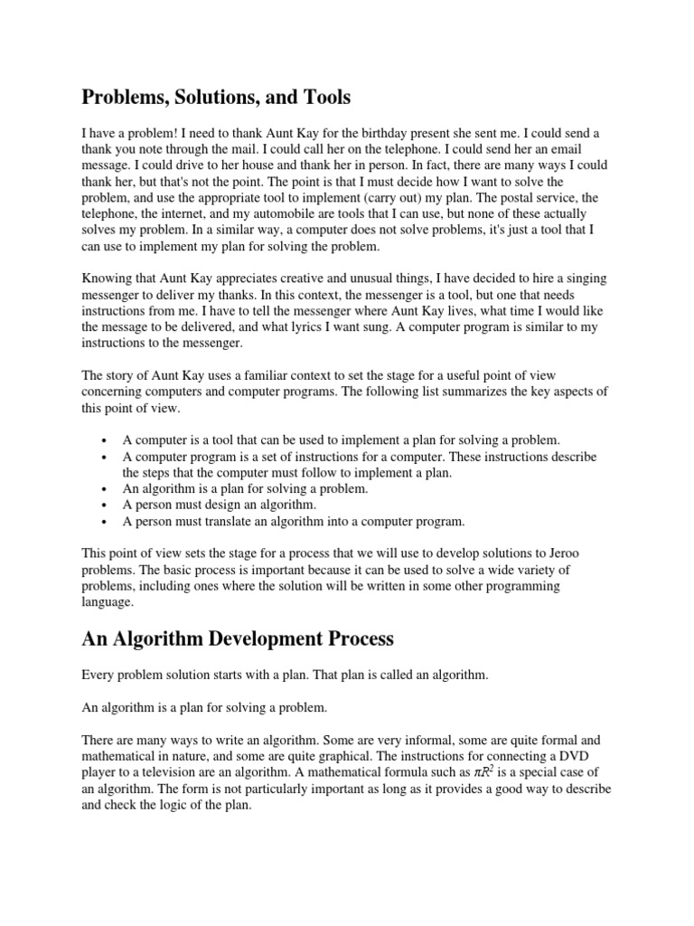 The development of an algorithm (a plan) is a key step in solving a problem. Once we have an