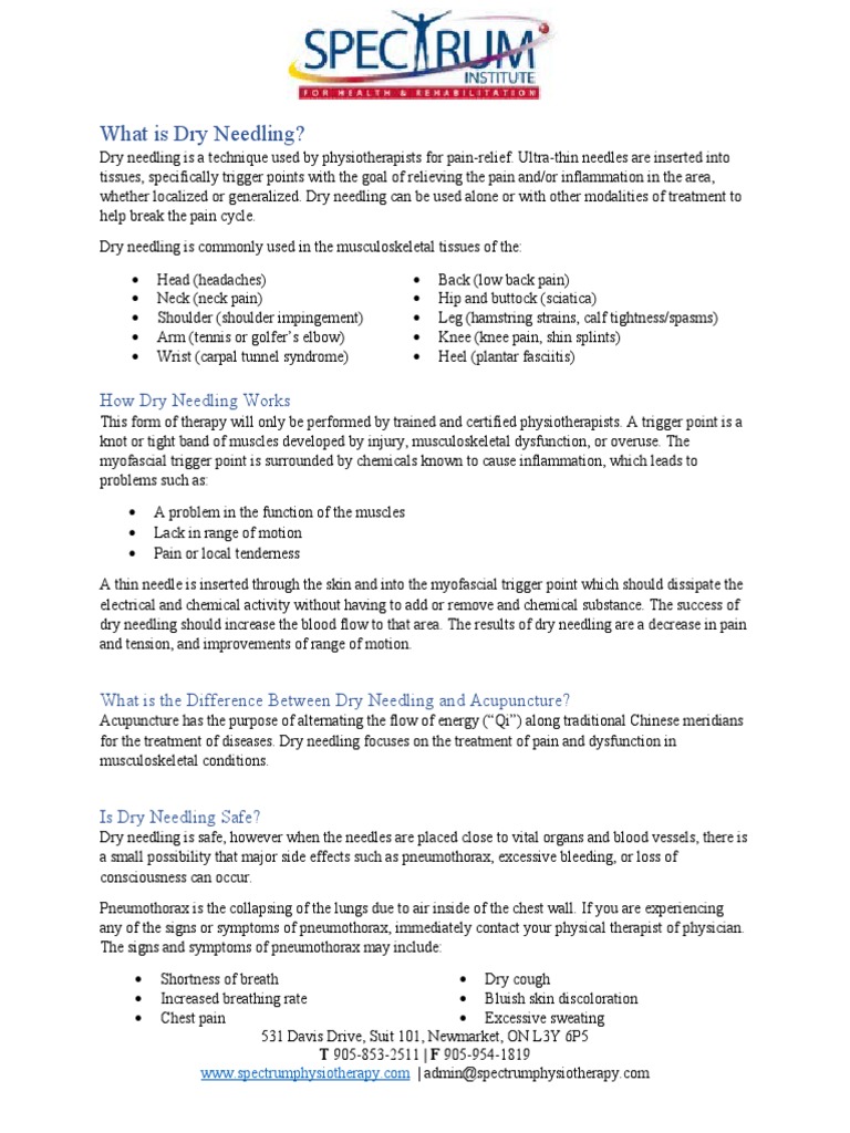 Dry needling is safe, however when the needles are placed close to vital organs and blood vessels, there is