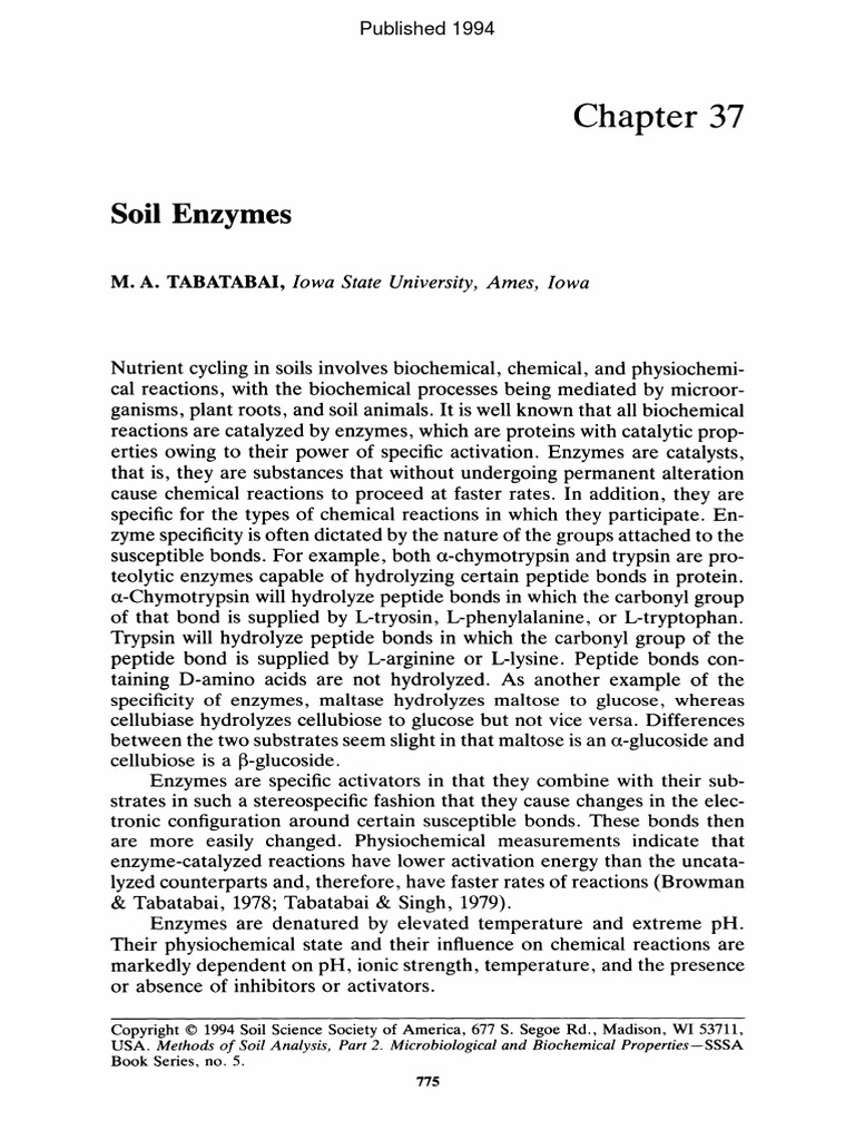 Soil Enzymes: TABATABAI, Iowa State University, Ames, Iowa