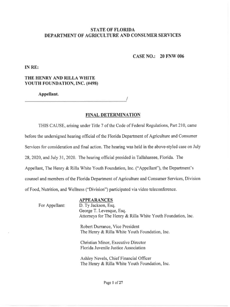 Final Determination - The Henry Willa White Foundation
