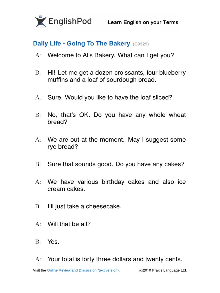 A: Welcome to Al’s Bakery. What can I get you?