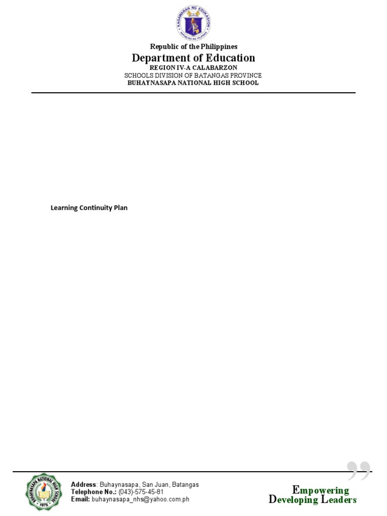 learning continuity plan to enable learners to continue learning and teachers to deliver