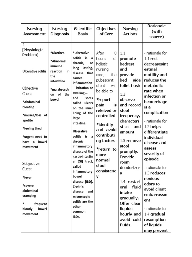 *Diarrhea *Ulcerative After 8 1.1 - rationale for