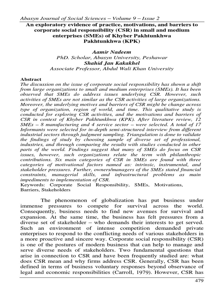 CSR in SMEs: Insights from Khyber Pakhtunkhwa