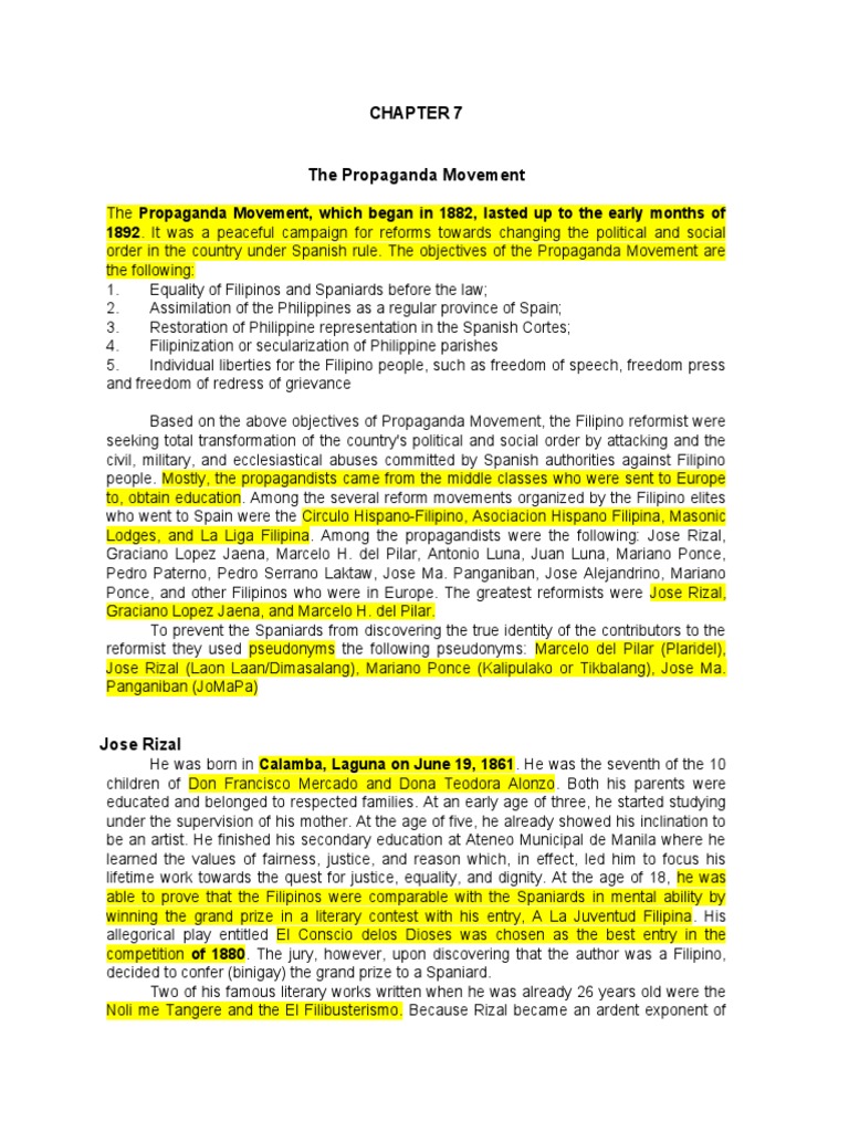order in the country under Spanish rule. The objectives of the Propaganda Movement are