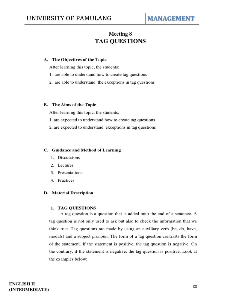 1. are expected to understand how to create tag questions