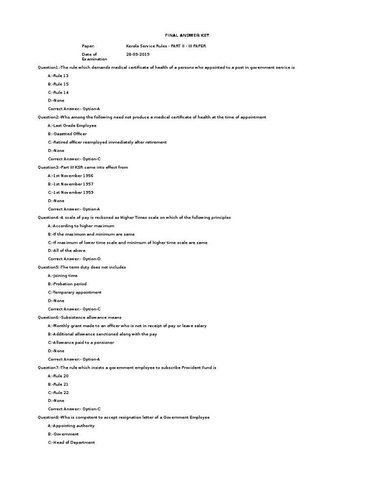 Question11:-Rule 28(A) KSR Part I will applicable to