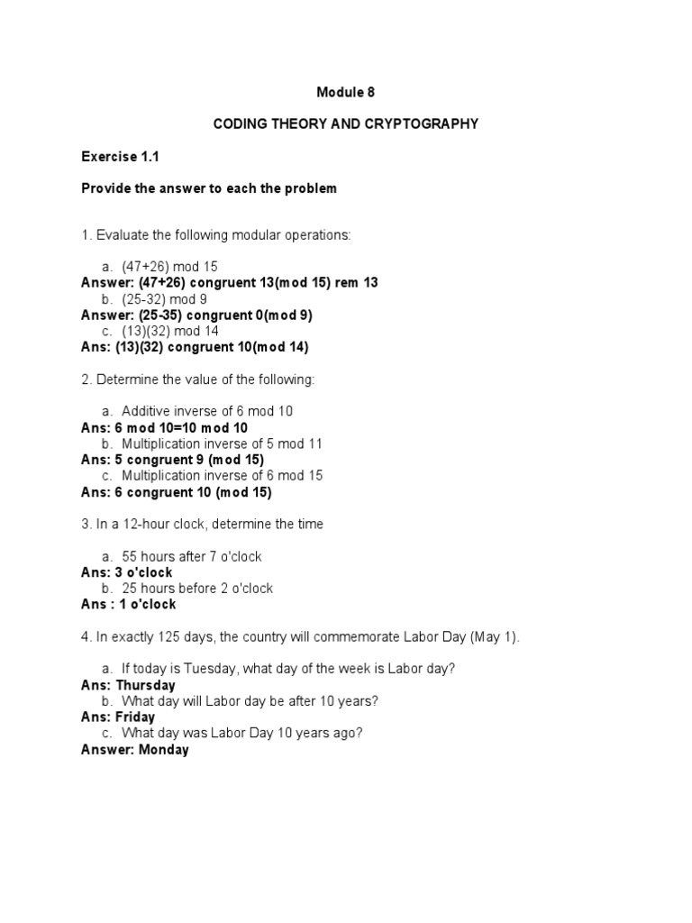 1. Evaluate the following modular operations: