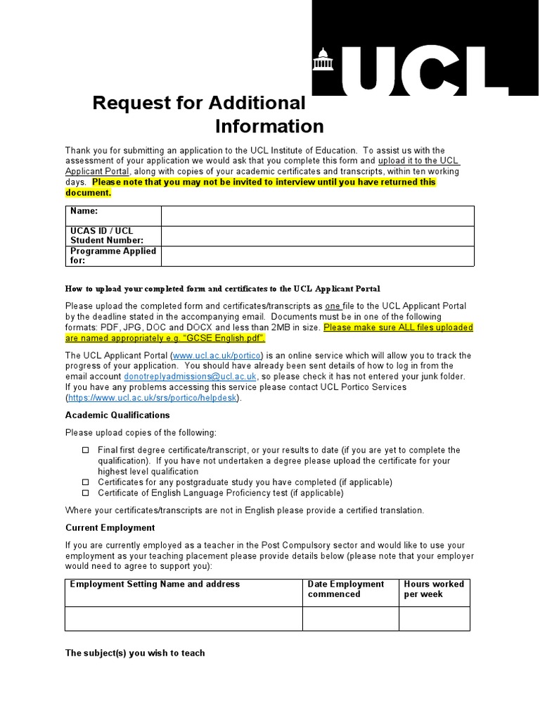 assessment of your application we would ask that you complete this form and upload it to the UCL