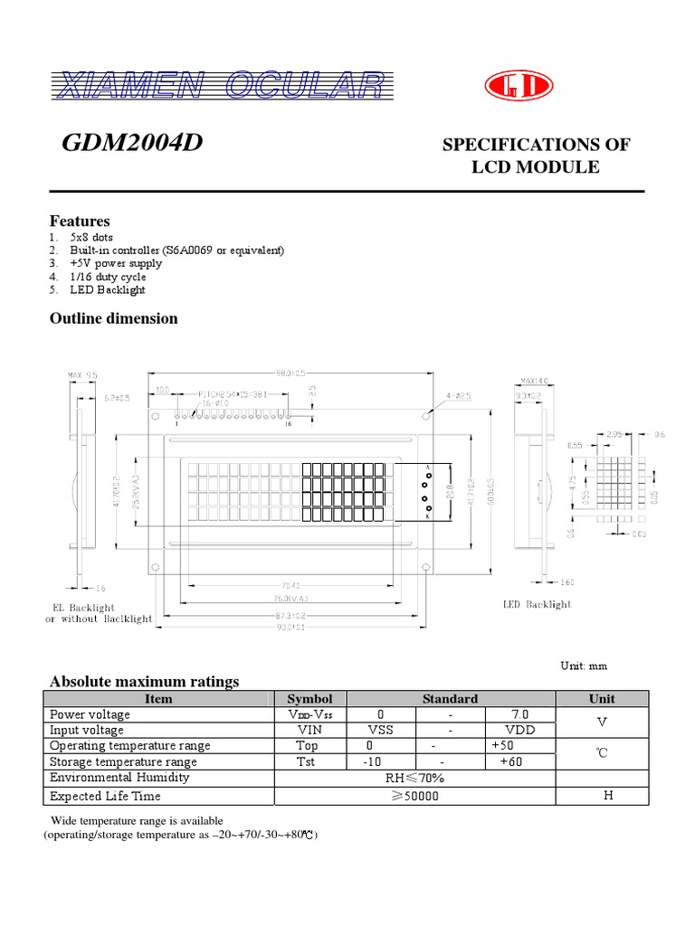 When 1-line display mode (N=LOW), DDRAM address is form “00H” to “4FH”.