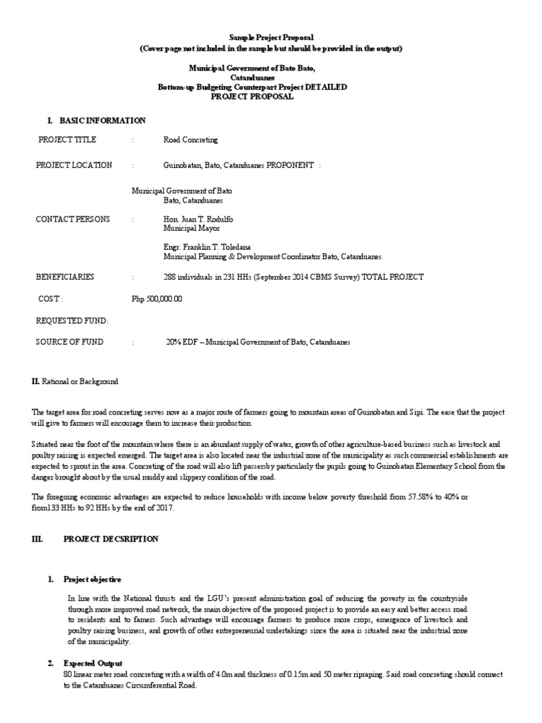 PROJECT LOCATION : Guinobatan, Bato, Catanduanes PROPONENT :