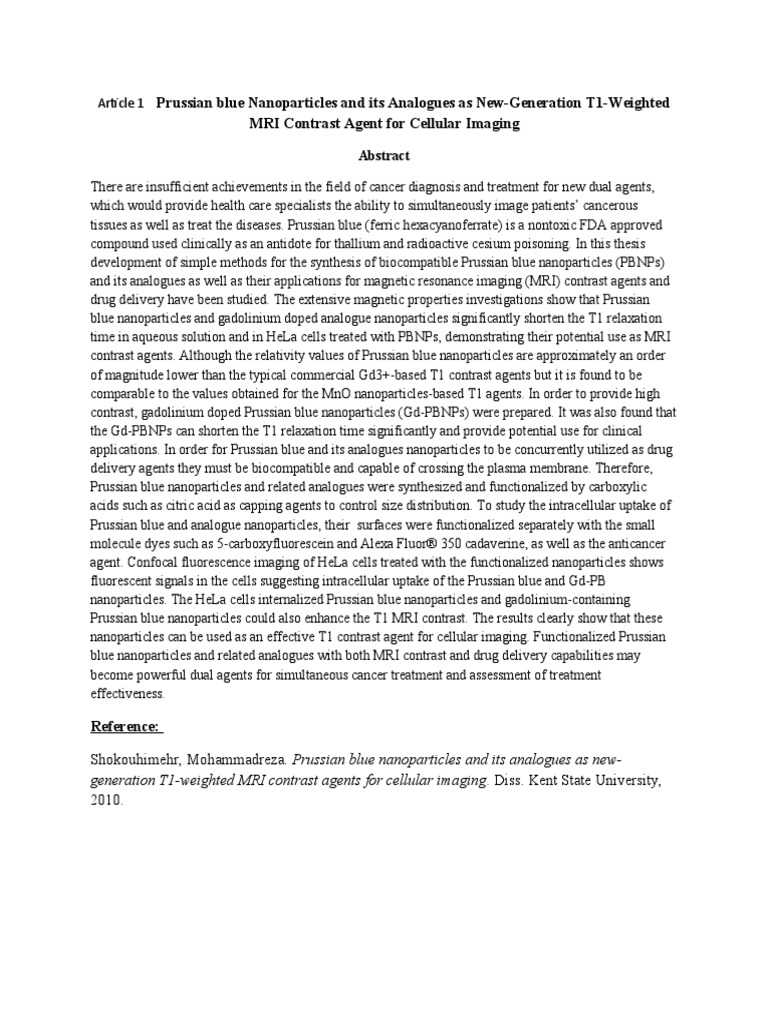 Article 1 Prussian blue Nanoparticles and its Analogues as New-Generation T1-Weighted