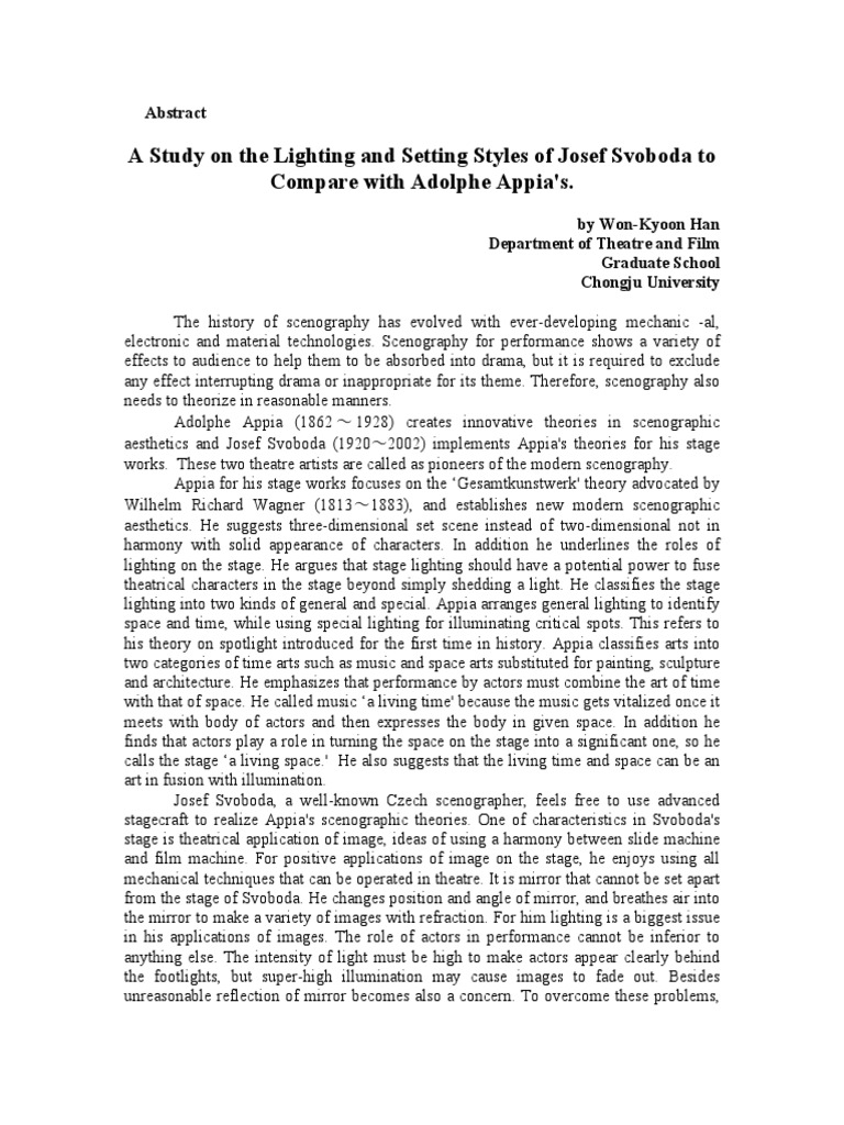 A Study on the Lighting and Setting Styles of Josef Svoboda to