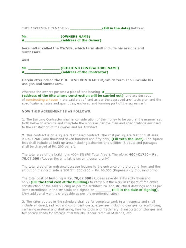 1. The Building Contractor shall in consideration of the money to be paid in the manner set