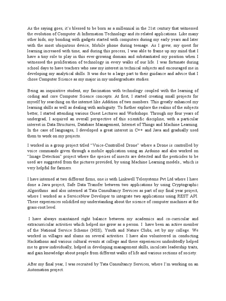 contribute my bit to the society. A dedicated study in Computer Science would help me gain a lot of