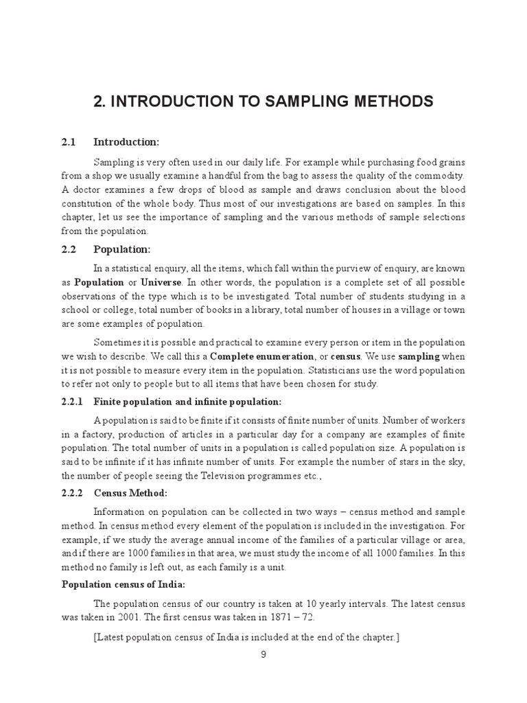 chapter, let us see the importance of sampling and the various methods of sample selections