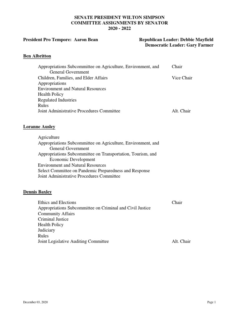 Save 2020 - 2022 Committee Assignments by Senator For Later