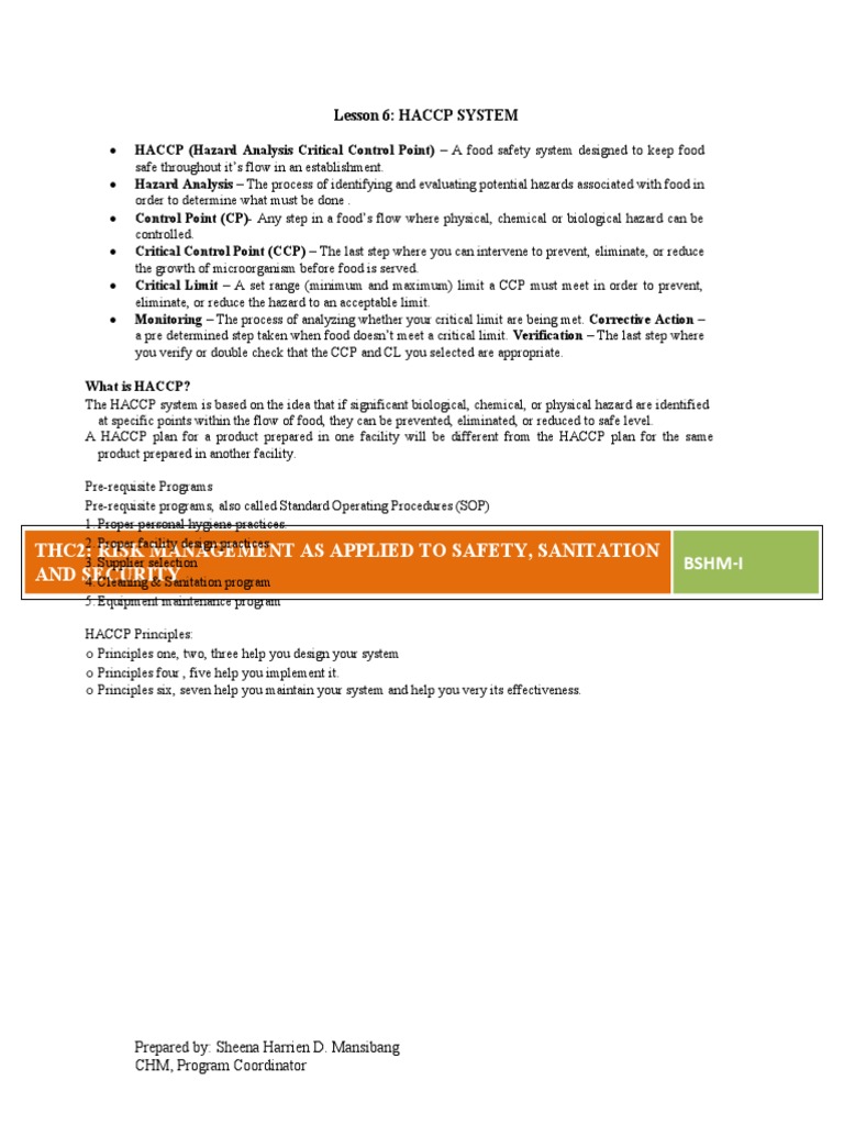 Lesson 6: HACCP SYSTEM