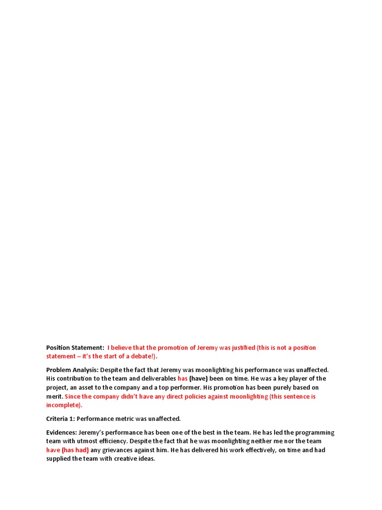 Position Statement: I believe that the promotion of Jeremy was justified (this is not a position