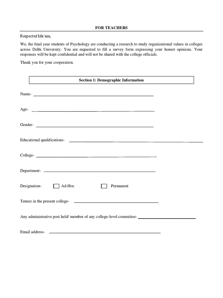 We, the final year students of Psychology are conducting a research to study organizational values in colleges