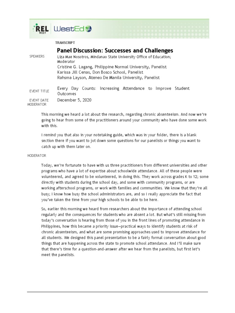 today’s conversation is hearing from those of you in the front lines of promoting attendance in