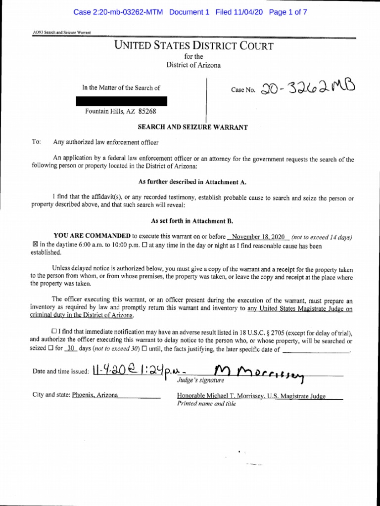 Search and seizure warrant