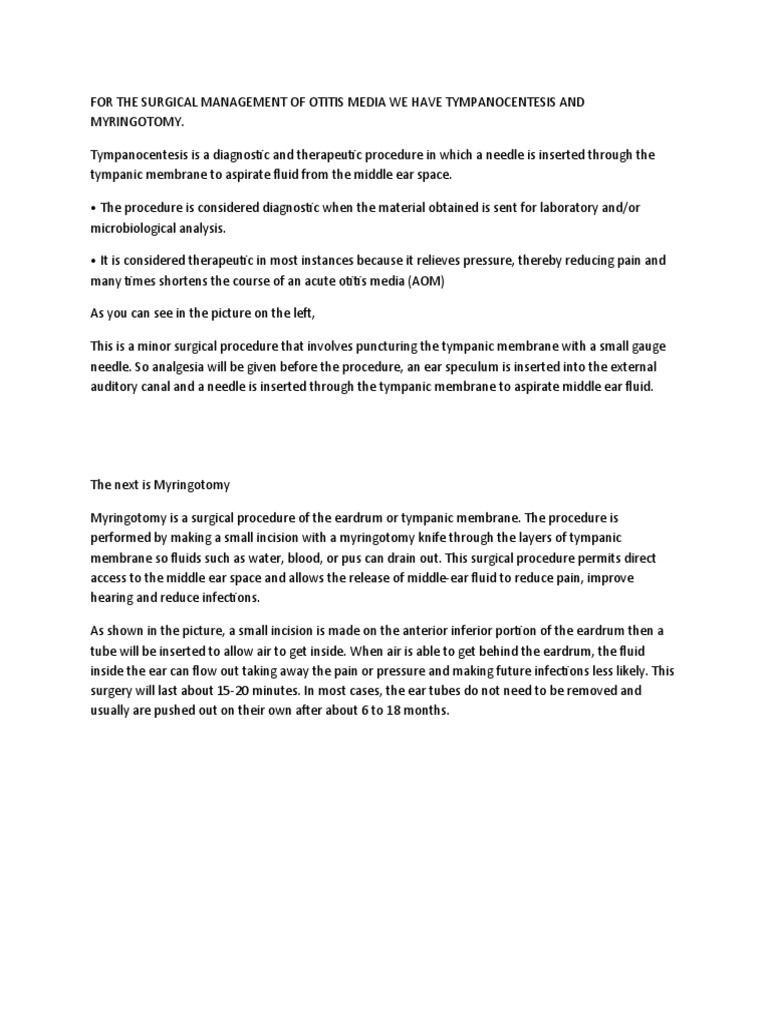 FOR THE SURGICAL MANAGEMENT OF OTITIS MEDIA WE HAVE TYMPANOCENTESIS AND