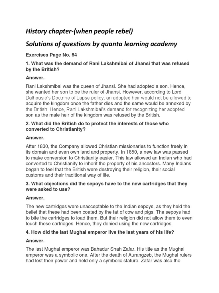 1. What was the demand of Rani Lakshmibai of Jhansi that was refused