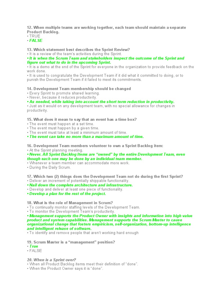 20. All the following statements on the Scrum Team are correct, EXCEPT: