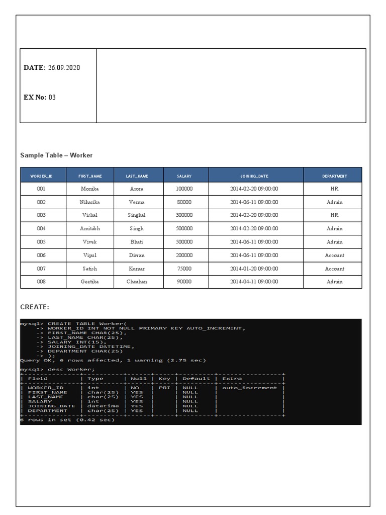 WORKER_ID FIRST_NAME LAST_NAME SALARY JOINING_DATE DEPARTMENT