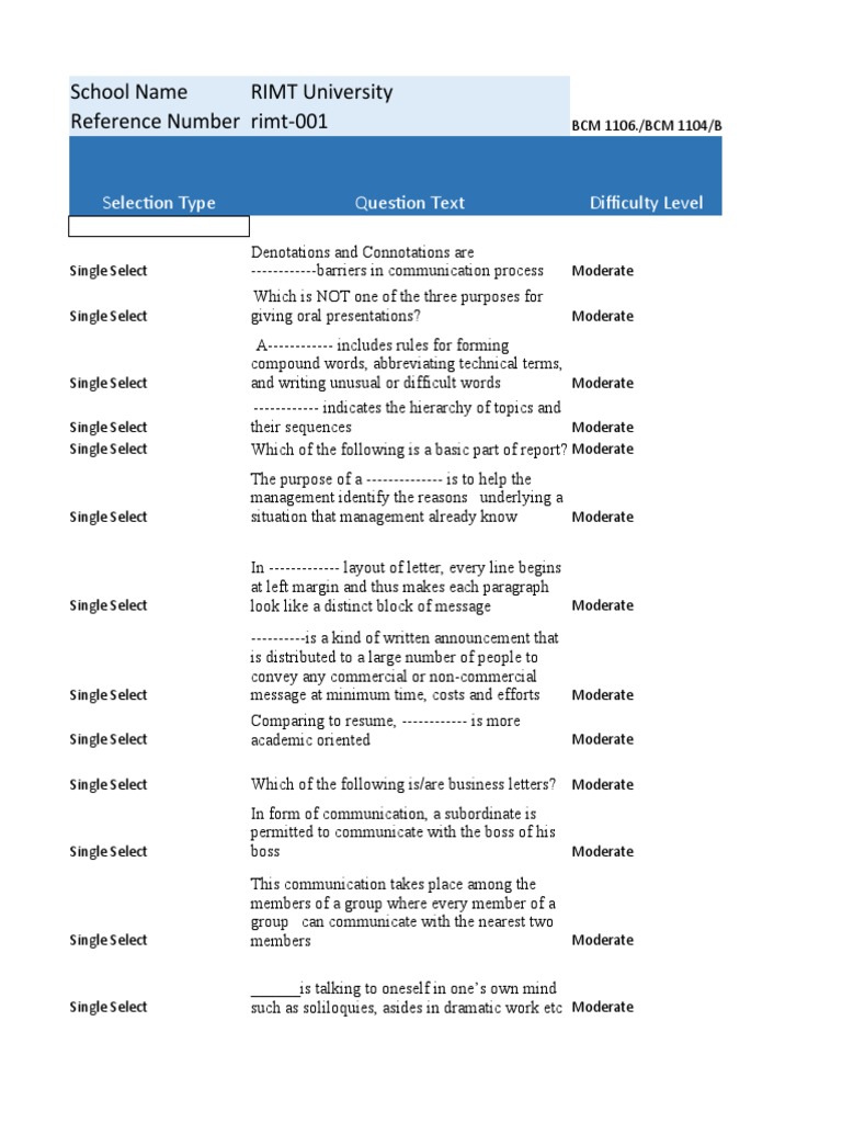 Single Select process of Business communication Moderate