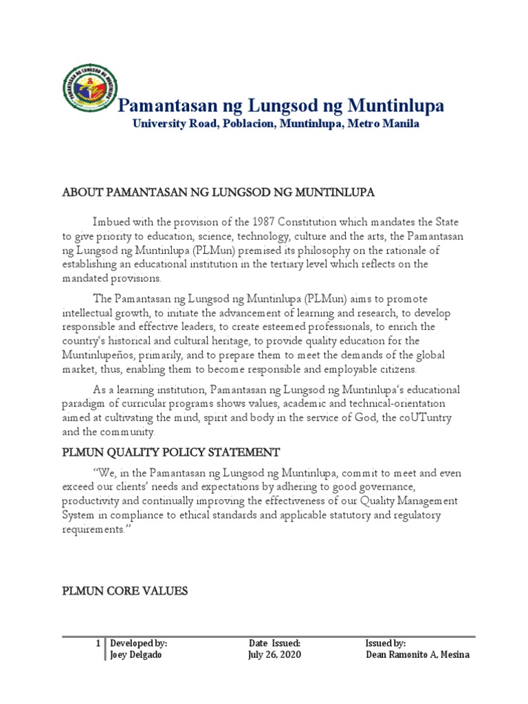 ng Lungsod ng Muntinlupa (PLMun) premised its philosophy on the rationale of