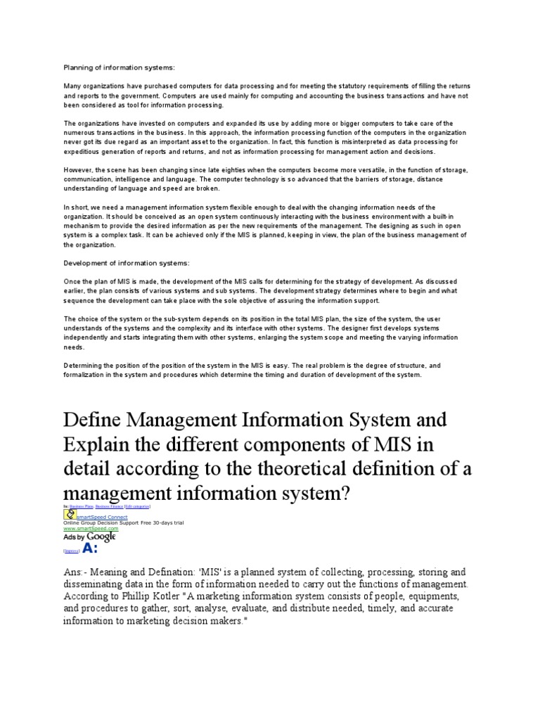 understood. Management Information Systems (MIS), sometimes referred to as Information