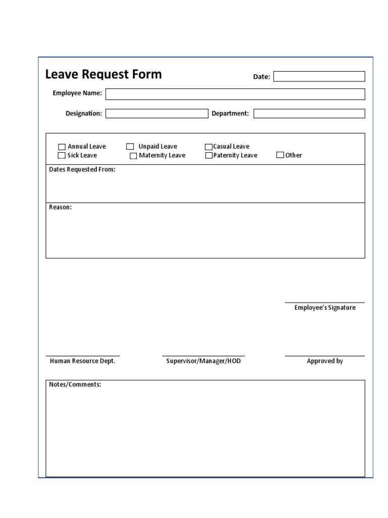 Leave Request Form Date: