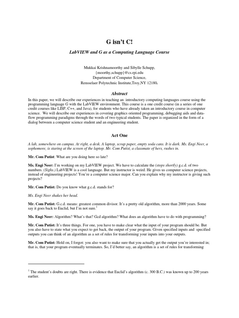 LabVIEW and G as a Computing Language Course