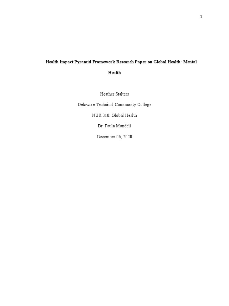 Health Impact Pyramid Framework Research Paper on Global Health: Mental