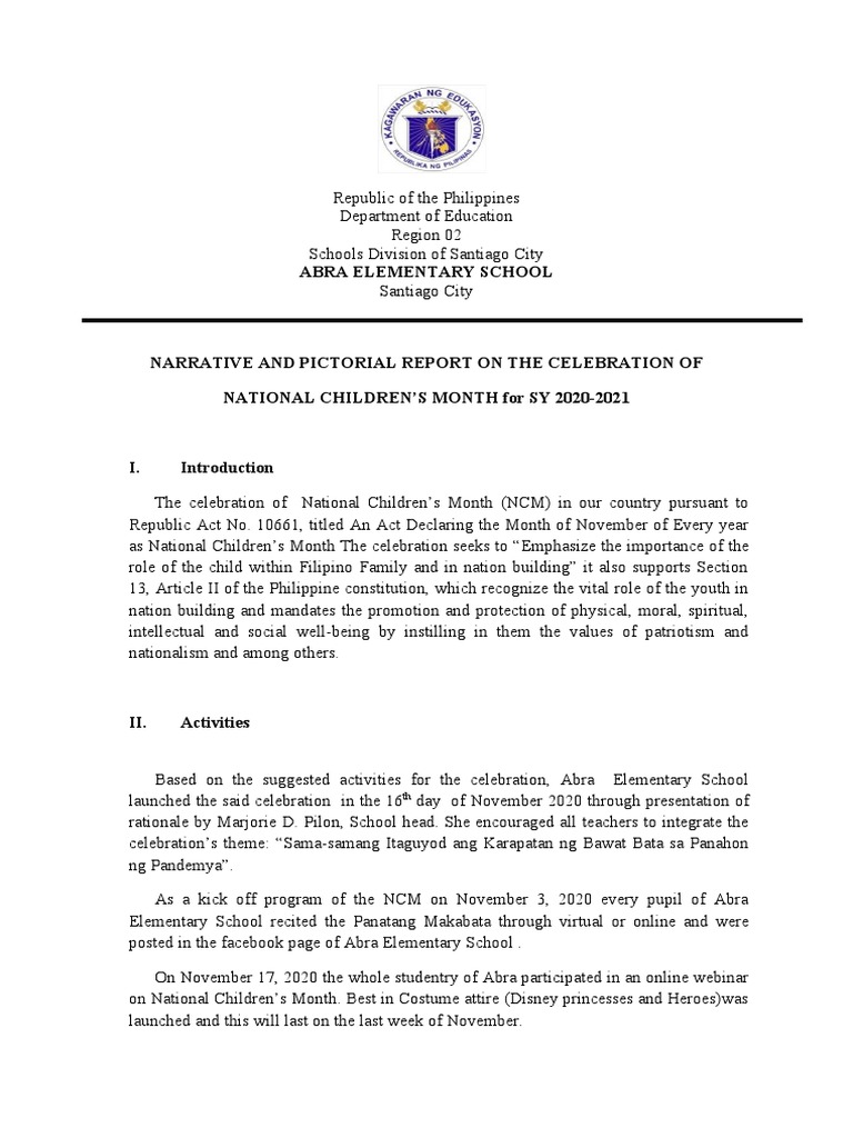 NATIONAL CHILDREN’S MONTH for SY 2020-2021