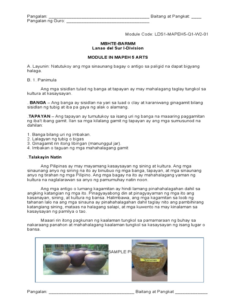 Module Code: LDS1-MAPEH5-Q1-W2-01