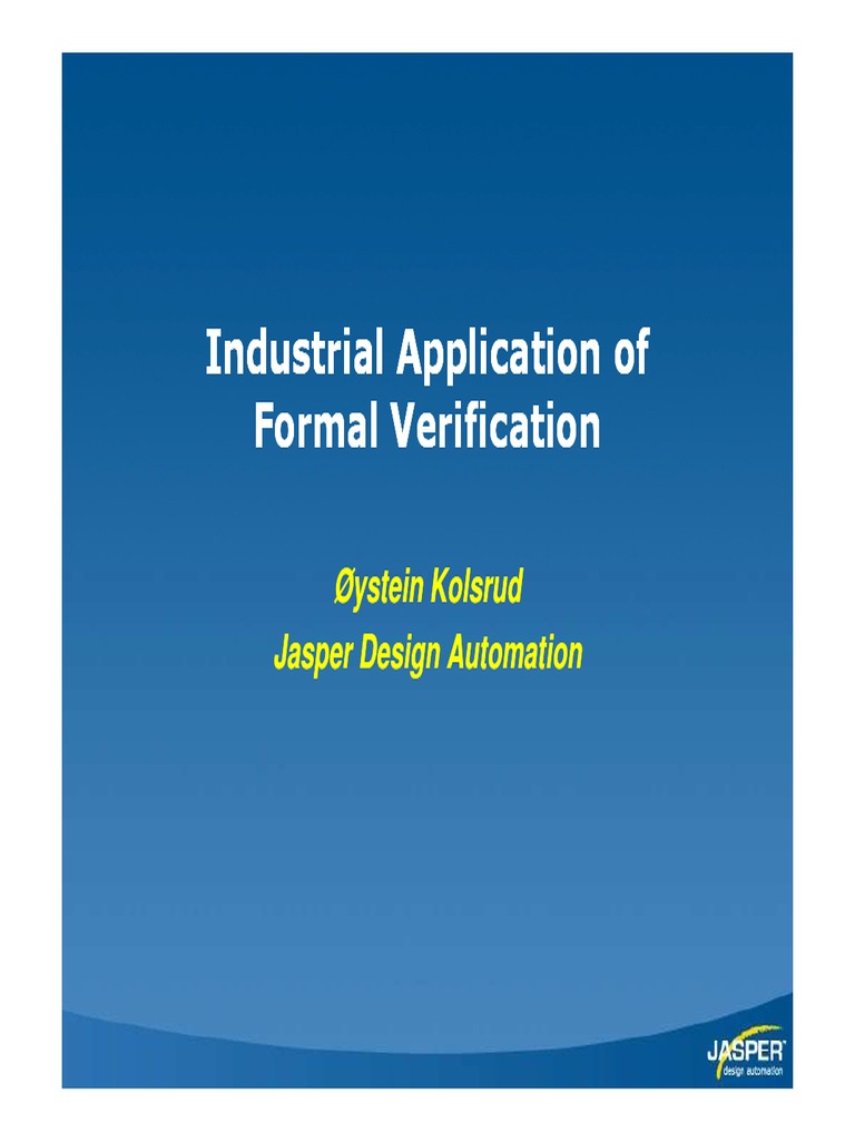 Proof Accelerators, InFormal, and GamePlan are trademarks of Jasper Design Automation, Inc.