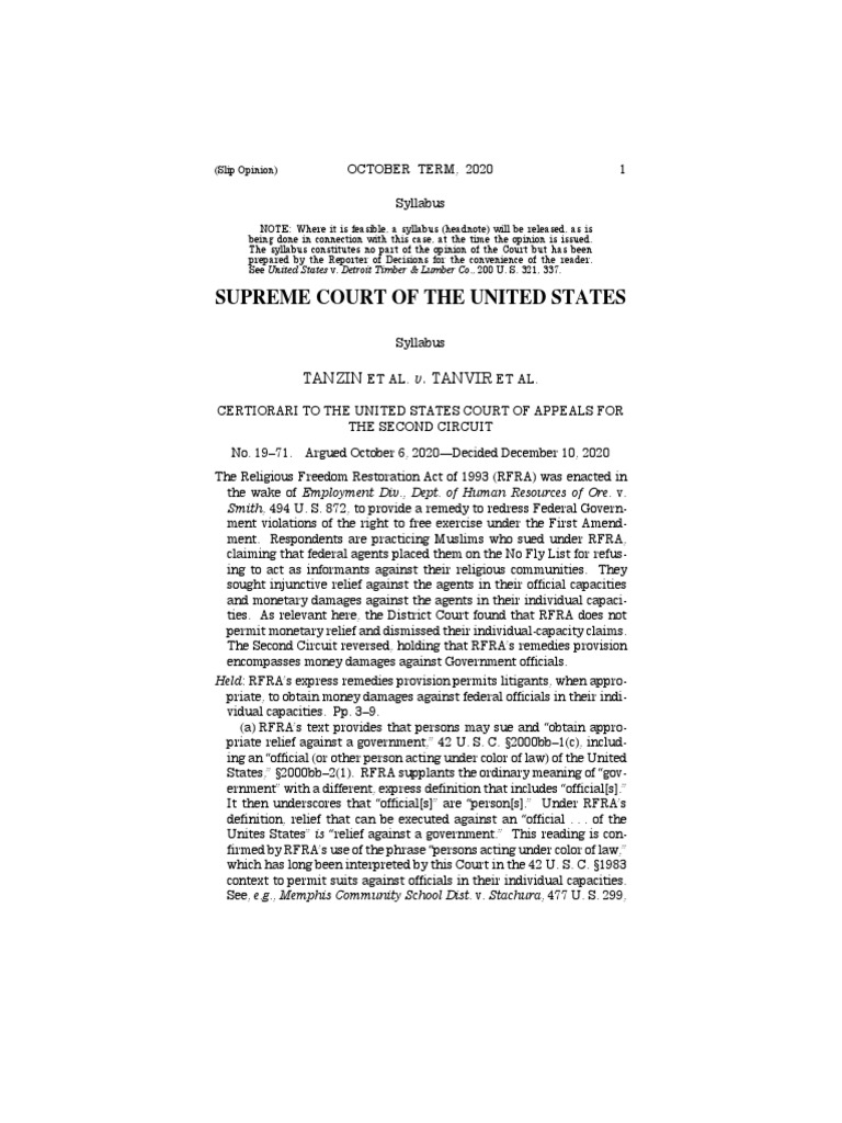 TANVIR Syllabus 305–306. Pp. 3–5. (b) RFRA’s term “appropriate relief” is “open-ended” on its face; thus, what relief is “ ‘appropriate’ ” is “inherently context dependent.”