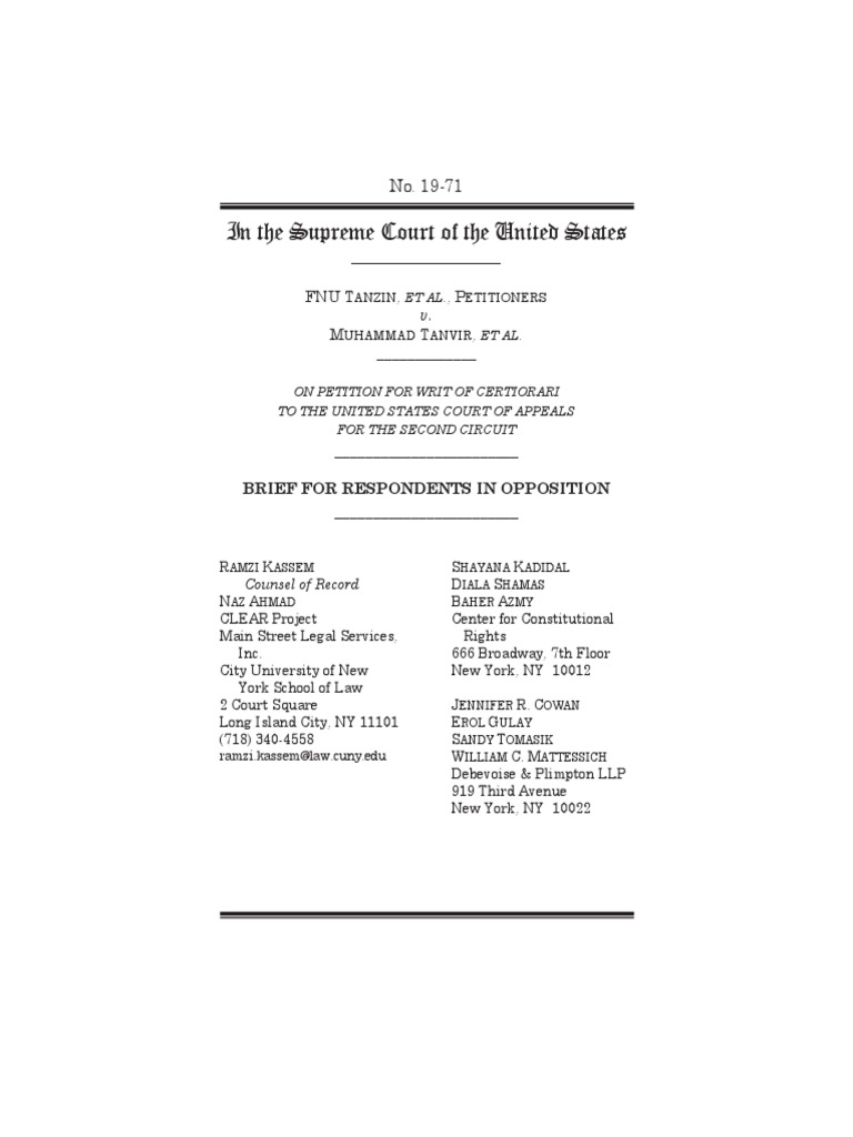 Petitioners were defendants in the district courtand appellees in the court of appeals. They are FNUTanzin, Sanya Garcia, John LNU, Francisco Artusa,John C. Harley III, Steven LNU, Michael LNU, andGregg Grossoehmig, Special Agents of the FederalBureau of Investigation (FBI); Weysan Dun, Special Agent in Charge, FBI; James C. Langenberg, Assis-tant Special Agent in Charge, FBI; and five John DoeSpecial Agents, FBI.Respondents are Muhammad Tanvir, Jameel Al-gibhah, and Naveed Shinwari, who were plaintiffs inthe district court and appellants in the court of ap-peals.