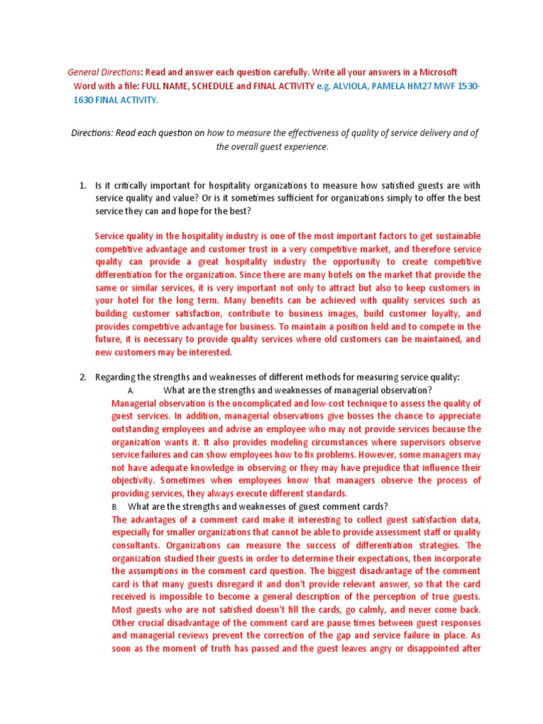 1. Is it critically important for hospitality organizations to measure how satisfied guests are with