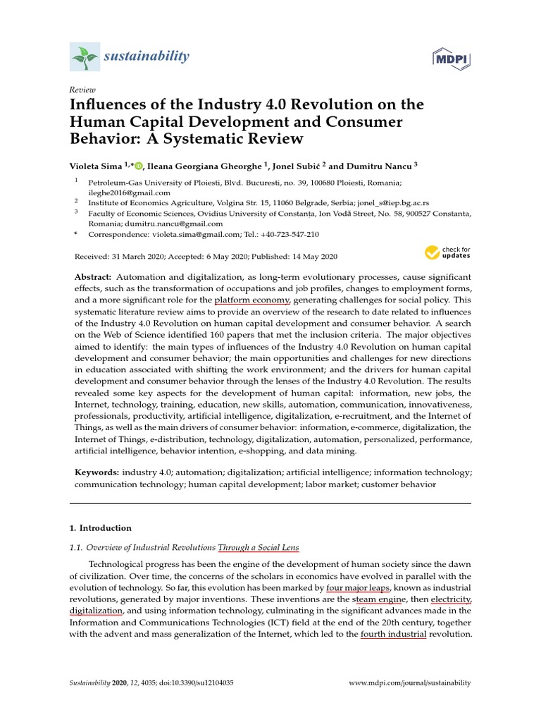 of the Industry 4.0 Revolution on human capital development and consumer behavior. A search