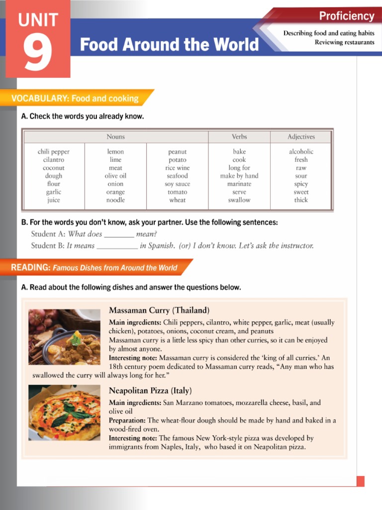 A. The following are words used to describe food. Look up the words you do not know.