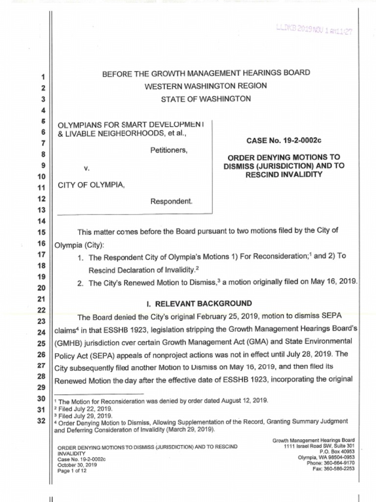Save GMHB Denial of Olympia Dismissal and Recession Req... For Later