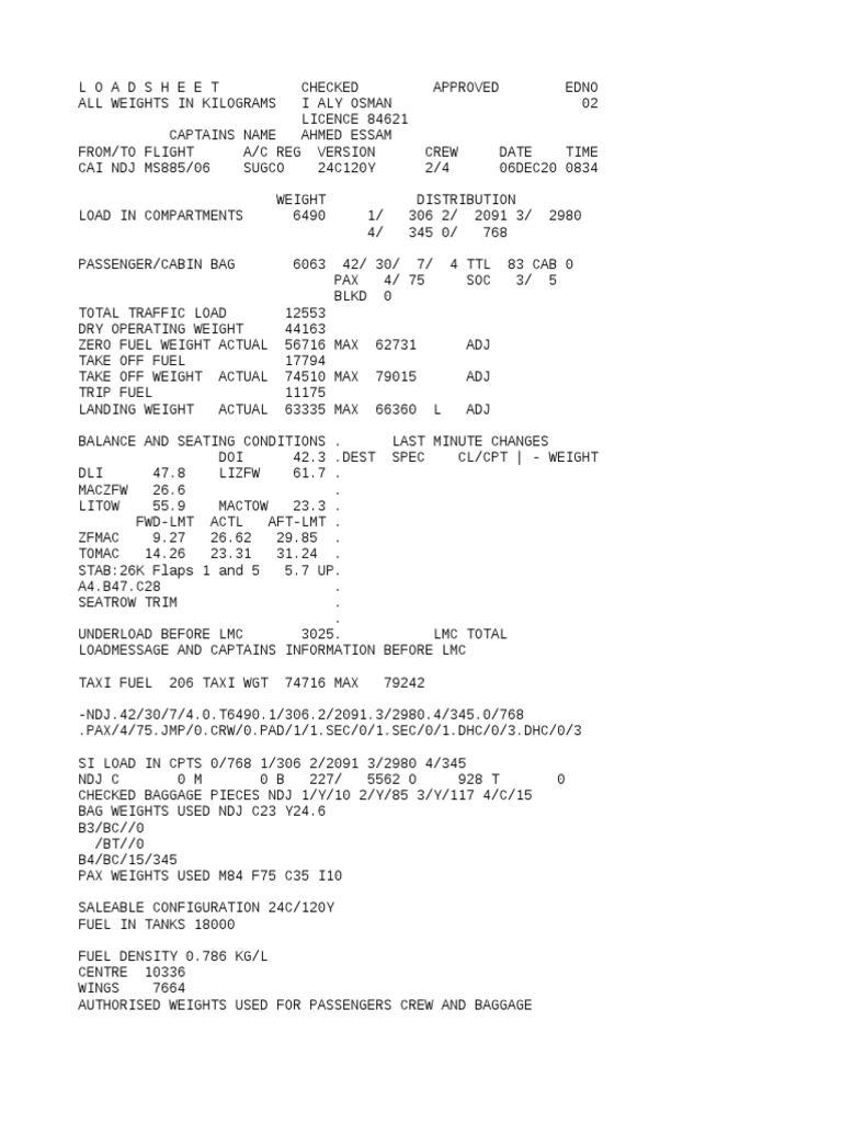 TAKE OFF WEIGHT ACTUAL 74510 MAX 79015 ADJ
